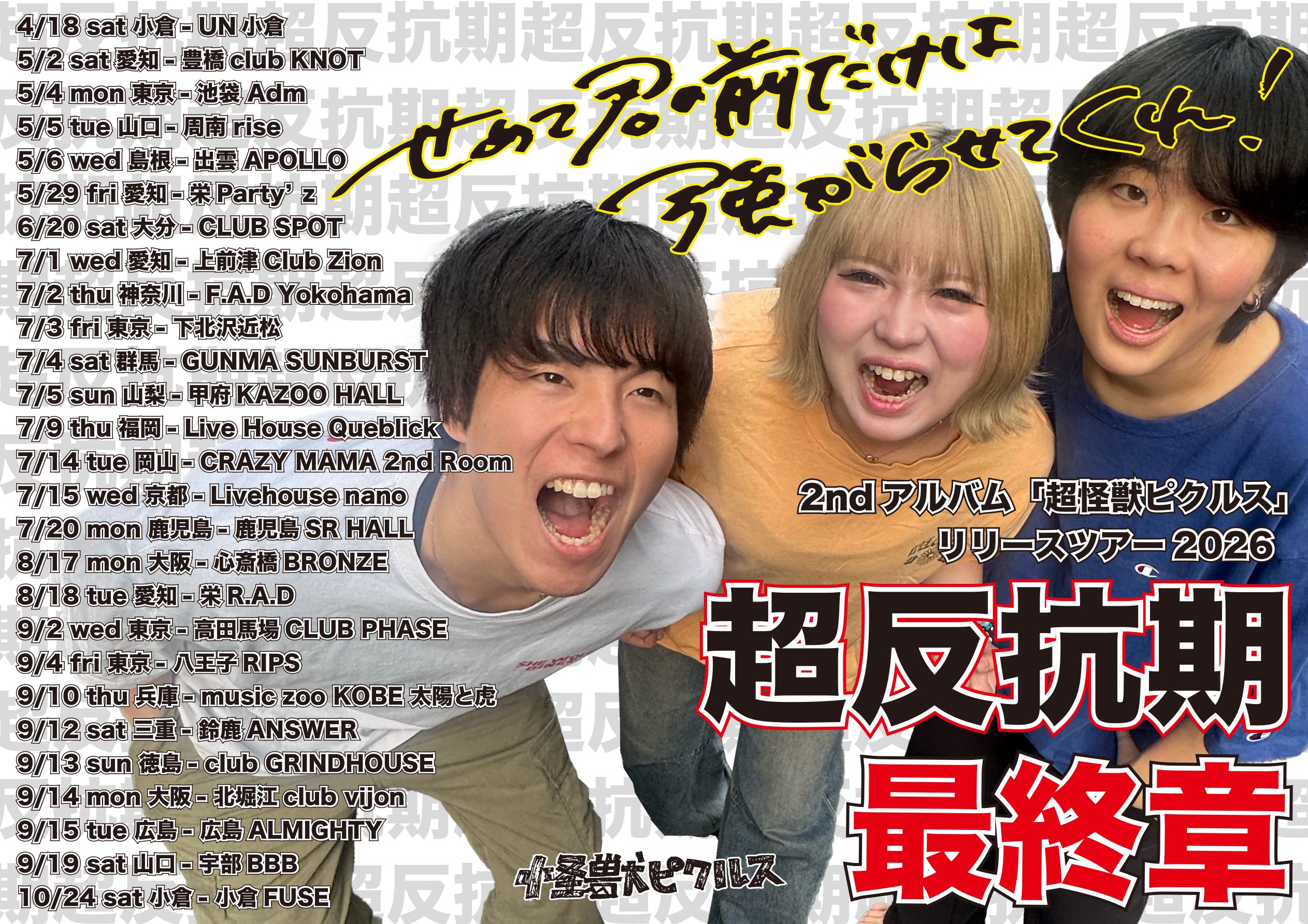 - 怪獣ピクルス 2ndアルバム「超怪獣ピクルス」リリースツアー2026 超反抗期-最終章- せめて君の前だけは強がらせてくれ!ツアー