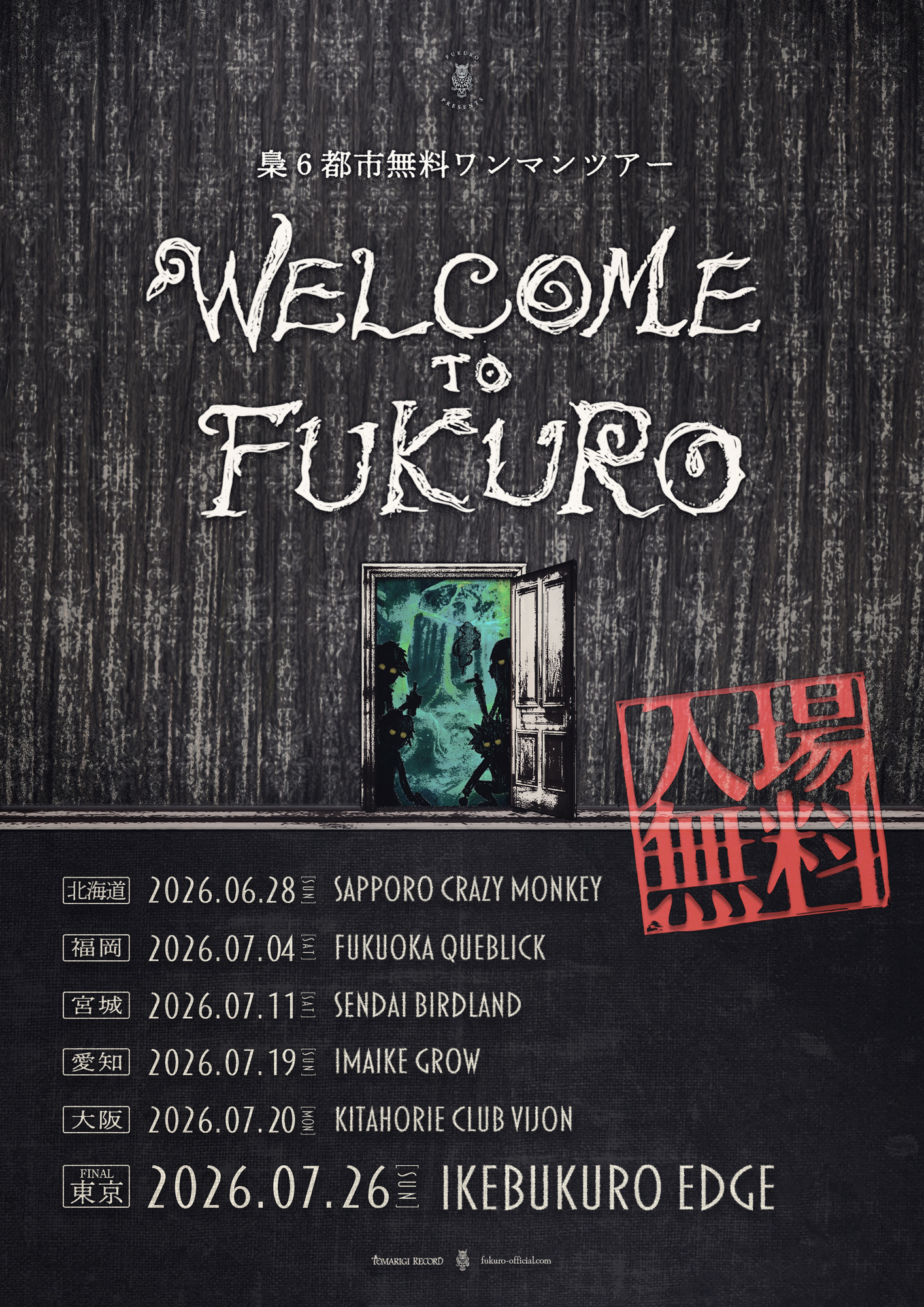 梟 6都市無料ワンマンツアー WELCOME TO FUKURO
