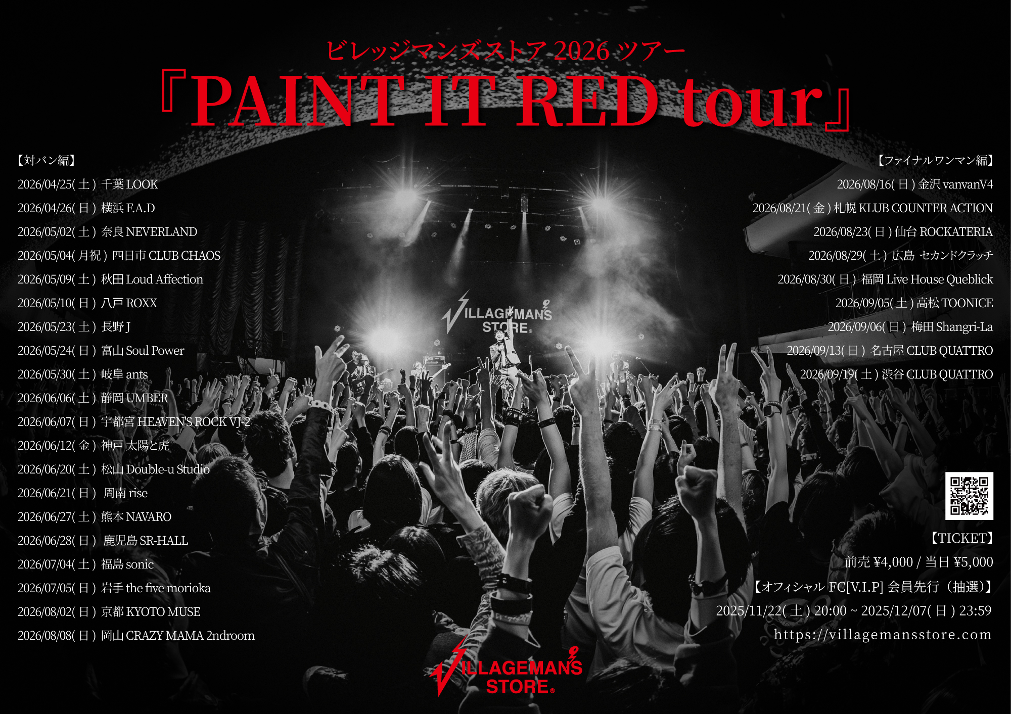 ビレッジマンズストア 2026ツアー「PAINT IT RED tour」ワンマン編